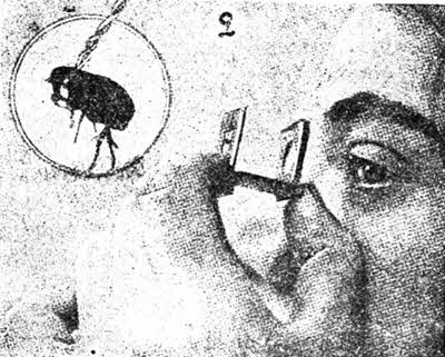 Блохи не только научаются возить тяжести, из них выходят настоящие акробаты. Особенную славу эквилибристки по канату приобрела «фрейлейн Арабелла». Крошечное насекомое с большой уверенностью проходит по проволоке, протянутой между двумя столбиками (снм. 3).