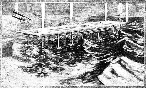 Успешно прошедшие испытания модели пловучего аэродрома и живой интерес широких технических кругов к новому проекту обещают нам, быть может, реальное осуществление его в недалеком будущем.