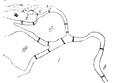 В Кенигсберге, в Германии, есть остров, называемый Кнейпгоф. Омывающие его реки делятся на два рукава, образуя фигуру помещенного здесь рисунка Через эти рукава переброшены семь мостов. Два студента побились об заклад, что все эти мосты можно обойти, проходя каждый из них не более одного раза. Сказано-сделано, но тот, кто хотел это сделать, вскоре убедился, что дело не так просто, как это кажется. И пари было им проиграно. – Попробуйте, может быть вы окажетесь сообразительней. Задача стоит того, чтобы над ней доломать голову; по крайней мере знаменитый математик Эйлер, живший в конце 18 века, посвятил ей целый математический труд, где нашел правила, когда и при каких случаях возможен такой однократный обход мостов.