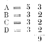 Не отчаивайтесь, читатель, если вам не удалось обойти все мосты по одному разу. Это не удалось даже самому великому Эйлеру, а он, наверно, был не худшим математиком, чем мы с вами. Эйлер однако установил следующие правила для того, чтобы заранее сказать, – можно ли обойти все мосты по одному разу. Обозначим отдельные местности, разделенные водой, (берега и острова) буквами А, В, С, Б и напишем таблицу, где в первом столбце будут названия местностей, во втором число мостов, соединяющихся с этой местностью. а в третьем столбце половины числа этих мостов, если они четные, и половины этих чисел, увеличенных на единицу, если он не четные. Затем складываем числа последнего столбца. Однократный полный обход мостов возможен только тогда, когда сумма эта равна числу мостов или больше его на единицу. Следует также заметить, что в первом случае (т. е. при равенстве суммы числу мостов) обход надо начинать с местностей, имеющих четное число мостов, а во втором случае – с местностей, где число мостов нечетное. Для Кенигсбергской задачи получим таблицу: