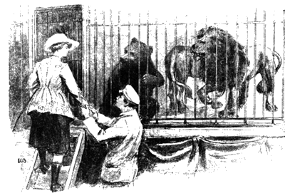 На окрик хозяйки служитель про тянул ей какой-то инструмент, в виде трезубца Нептуна. Едва Арабелла взяла его в руки, как лев вдруг прилег и повернулся на бок.