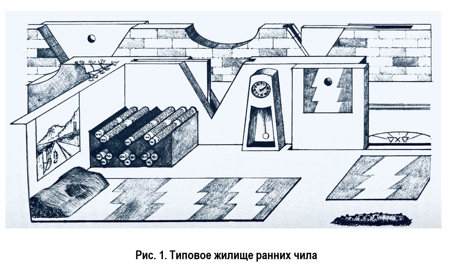 На рис. 1 показано типичное жилище чила. Как видно, стены украшены картинами, которые, однако же, не висят, а нарисованы прямо поверх стены. Внутри есть книги, но они имеют форму свитков и хранятся в специальном свиточном стеллаже. Также на рисунке видны мягкие коврики и подушки, но предназначены они не для сна, а для отдыха и чтения, поскольку чила не спят. Жилище оборудовано окнами, но стекол в них нет, потому что чила не нужно оберегать свой дом от излишне холодного или горячего воздуха. Если чила хочет уединения, он или она просто закрывают окна раздвижными горизонтальными ставнями. У жилища есть дверь, которая также использует раздвижной механизм. Современные чила используют для отслеживания времени ядерные хронометры, однако маятниковые часы старого образца на Яйце работают точно так же, как и на Земле – при условии, что маятник снабжен прочным каркасом, способным выдержать мощную гравитацию нейтронной звезды. Если на Земле маятник длиной в один метр тикает медленно, примерно раз в секунду, то один тик миллиметрового маятника на Яйце занимает крошечное время в одну треть мига. Справа на рисунке можно увидеть одного из излюбленных чильских питомцев – длинношерстного крадуна.