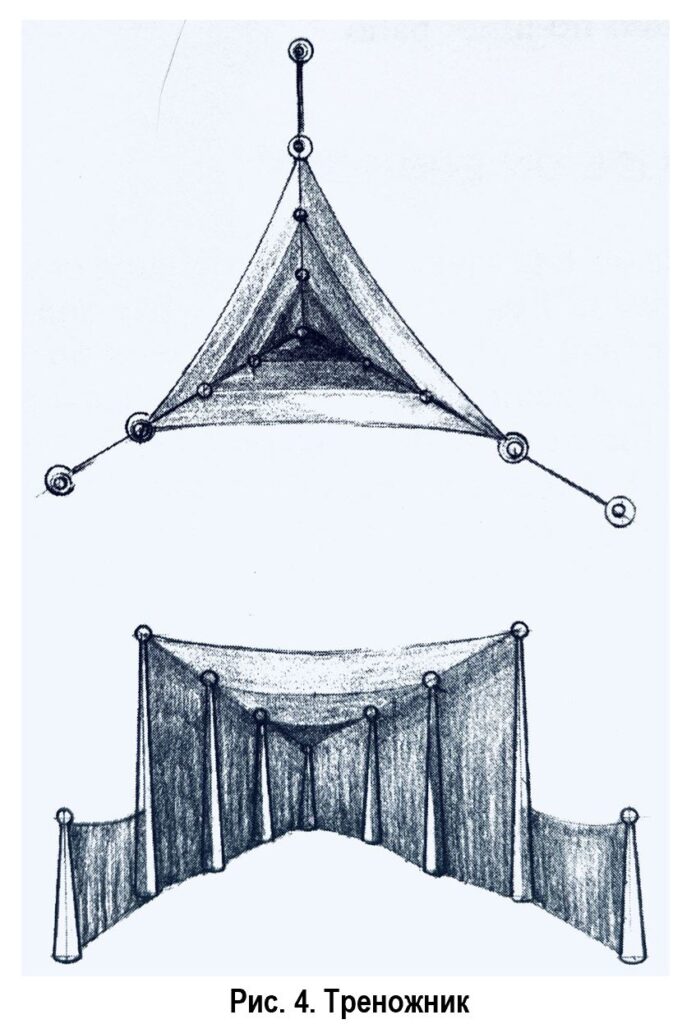 Вторая форма растительной жизни представлена треножником и показана на рис. 4. Подобно земным баньянам, эти растения отращивают вспомогательные стволы, а затем соединяют тройную систему взаимосвязанных опор, дополняя структуру мембранами и волокнами натяжения.
