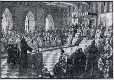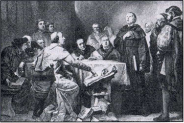 Мартин Лютер обращается к императору Карлу V в Вормсском конгрессе β 1521 году Архив Халтона