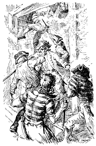 Почалося все якось несподівано: зненацька залунав тупіт ніг і рев голосів, потім вигук Алана і звуки ударів, хтось пронизливо зойкнув, наче його поранили. Я озирнувся через плече й побачив на дверях містера Шуена, який схрестив шпагу з Аланом.