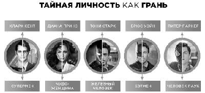 Внутри мягкосердечного журналиста Кларка Кента скрывается его жесткая решительная противоположность – Супермен. Диана Принс таит в себе Чудо-женщину, Тони Старк превращается в Железного Человека. Брюс Уэйн, защищая мирных горожан, становится Бэтменом, а Питер Паркер – Человеком-пауком.