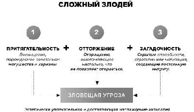 Третье качество (загадочность) – ключевая черта злодея. Совокупность всех трех дает интригующее ощущение зловещей угрозы.