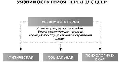 Слабые места и промахи часто делают героя человечнее, многограннее, хотя для экшена одна-две грани – это уже достаточно сложно. Чтобы оказаться уязвимым, герою не обязательно иметь ахиллесову пяту. Главную роль играет оружие злодея. Оно должно работать – прежде всего против героя. Потому что каким бы мастерством и силой герой ни обладал, он должен быть уязвим перед ключевой тактикой злодея.