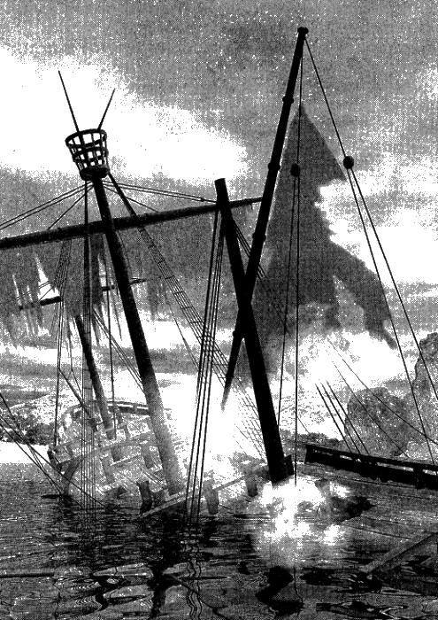 Двуногие с хрипом карабкались на высокий борт, прыгали на палубу, густо залитую кровью. Они задыхались. Они возбужденно орали. Они наносили и отражали удары. Рявкнула, но тут же умолкла пушка. Обжигаясь дымным воздухом, давясь его горячими влажными струями, Аххарги-ю неясным облачком поплыл к оборванному, нелепо перекошенному существу. Оно особенно активно хрипело, пытаясь прорваться на шканцы. Одна нога у него была деревянная, но это не мешало ему махать топором, подавая пример приятелям.