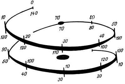 Рис. 2.3. Предполагаемое закручивание суперспирали ДНК вокруг сердцевины нуклеосомы. Отмечены места расщепления ДНК нуклеазой [117]