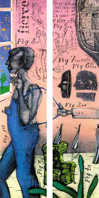 Девушка повела его к дереву и на ходу принялась рассказывать. Оказалось, дерево подкармливается специальным зеландским составом с растворенными в нем материалами: лесом различных пород, железом в виде гвоздей и шпилек, а сейчас уже начали растворять краску, потому что скоро дело дойдет и до нее. Разумеется, для того, чтобы готовить раствор и удобрять им дерево, необходимы рабочие руки, а их всегда не хватает. Сами знаете, что в нынешней обстановке мало кто захочет заниматься таким странным делом. Кроме того, все время норовит вырасти что-нибудь лишнее, надо подрезать. Скульптуру выращивать очень тяжело. Вон там наверху работает Ящерка, подрезает веточки. Знаете ли, каждую ночь выстреливают новые побеги. Сейчас приедет Капитан, привезет уайт-спирита, чтобы протереть срезы, – тогда расти перестанет.