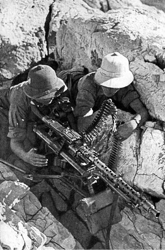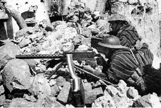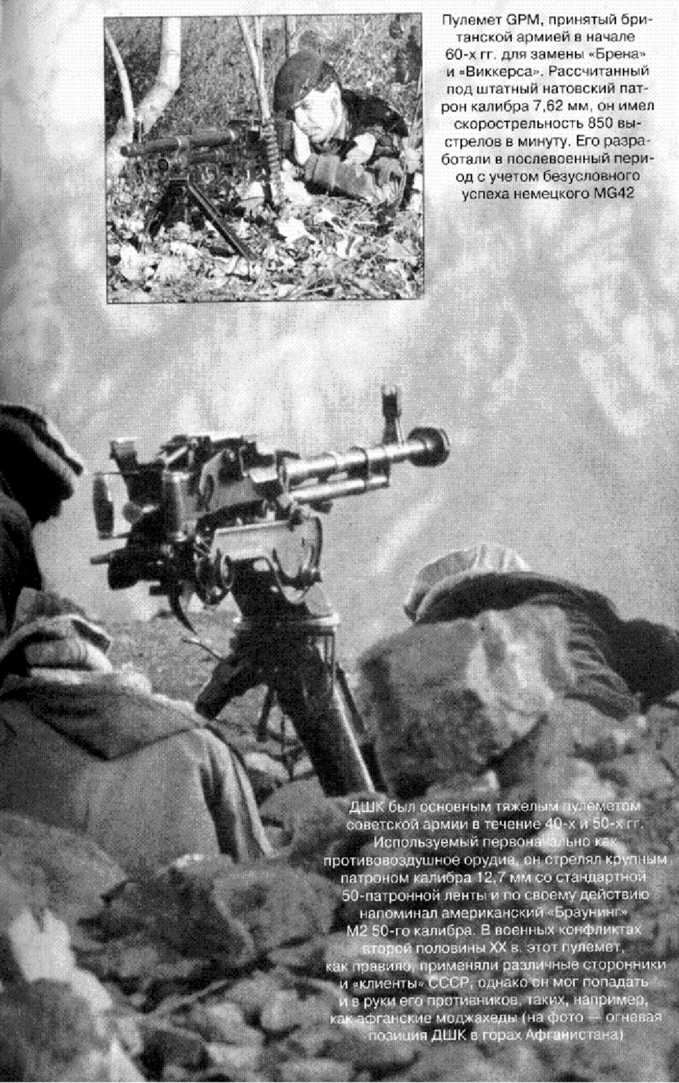 Как и тяжелый пулемет М2 50-го калибра, легкий американский пулемет «Браунинг» 30го калибра начал развиваться в конце Первой мировой войны, но особенно популярным в войсках союзников он стал во время Второй мировой войны (на фото из него ведут огонь марокканские гумьеры, сражающиеся в Италии в составе Французского экспедиционного корпуса). При весе в 14 кг (32 фунта) и скорости стрельбы 500 выстрелов в минуту этот пулемет с воздушным охлаждением при выполнении задач поддержки пехоты зарекомендовал себя как чрезвычайно удобное оружие.