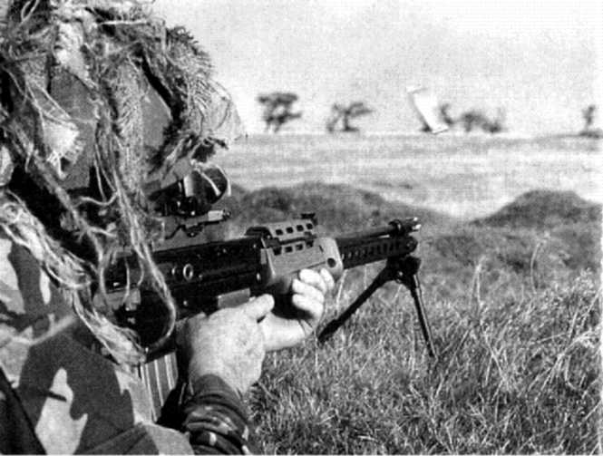 Легкий пулемет поддержки L86A1, применяемый в британской армии с середины 80-х гг., следует той же конструктивной концепции, что и российский РПК, по сути являясь аналогом стандартной автоматической винтовки L85A1, но с более длинным и тяжелым стволом.