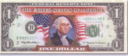 Рис. 84. США – 1 доллар 1999 г. – лицевая сторона (157×65 мм)