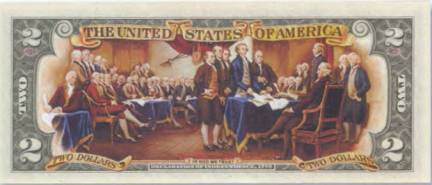 Репродукция с картины «Подписание Декларации независимости», помещенная на двухдолларовой банкноте, стала невольным свидетелем и одной пикантной тайны, которую до сих пор пытаются скрыть за океаном. С самым важным историческим документом США [23]23
