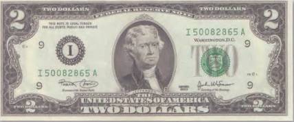 Кстати, несмотря на то, что в том же виде она выпускалась еще в 1995 и 2006 гг., встретить эту купюру в обращении можно нечасто. С момента выхода в 1976 г. она стала заветным объектом коллекционирования у американцев. И увидеть ее можно не только в альбоме бониста, но и заключенной в рамку на столе у врача или на стене в офисе государственного деятеля. Принято считать, что она приносит удачу. Впрочем, так было не всегда. Первые пробные выпуски двухдолларовых банкнот, имевшие место в 60-х гг. XX в., не увенчались успехом, а иногда отдельные купюры даже отказывались принимать к оплате.