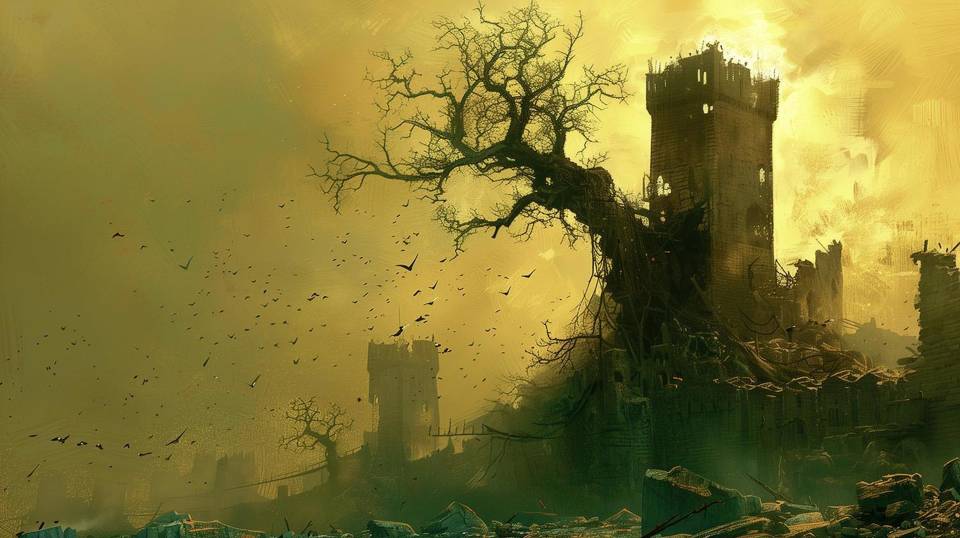 Виконт последнее время редко добирался во время ежевечерней прогулки до щербатых колонн – большинство цветов росло близко к террасе, они как будто старались спрятаться от посторонних глаз в тени стены, окружавшей башню, в последние дни уже столь невысокой, что с террасы виконт мог смотреть вовне, на лежащую за стеной мешанину вспученной земли, горелого дерева и изломанного камня, концентрическими волнами уходящую до самого горизонта, у которого хаотическая конвульсивная масса слегка поднималась чашей вверх перед тем как окончательно скрыться из виду. Руины окружали дом со всех сторон, и эта унылая, однообразная мешанина подчеркивала уединенность и спокойствие, что царили вблизи башни. Здесь же, в саду, даже воздух казался светлее, а солнце теплее, тогда как обгорелое пространство вокруг всегда было тусклым и чужим.