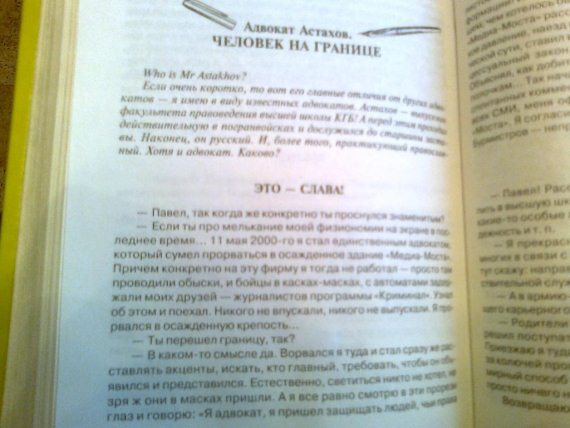 Известная история, как Павел Астахов вызвался защищать НТВ, когда на него делали рейдерское нападение. Он прибежал, вломился в дверь и сказал, что здесь нарушаются юридические права и обязанности, и вызвался на защиту. При всем при том, что у НТВ были адвокаты, его в команду взяли. И Павел Астахов с того самого времени стал известным адвокатом, человеком. Отсылаю Вас к интервью известного адвоката не менее известному журналисту и писателю Игорю Свинаренко в книге «Сильно умные». Вот выдержки этого редкого фрагмента, который Вы не найдете ни на одном сайте. Секретно!