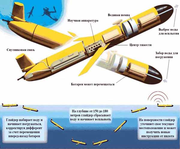 Рис. 44. Общая схема глайдера и принцип его действия.