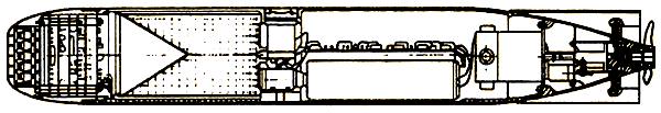 Рис. 49. Продольный разрез итальянской миниторпеды А200.