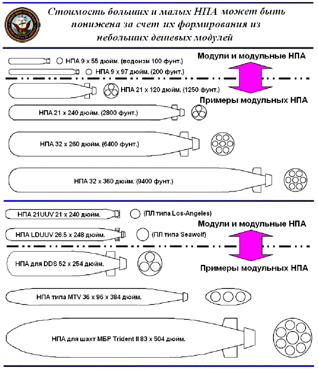 Реализация такого подхода при проектировании ПУ носителя НПА позволит достичь максимальной гибкости в его эксплуатации, экономии в поставках и строительстве, в темпах усовершенствования и модернизации. Подобная модульная концепция может быть реализована и при размещении ПУ на подводных аппаратах. В частности, аналогичное построение НПА из небольших модулей (которые, при доработке конструкции, могут быть заменены на ПУ) приведено в [18] (рис. 55).