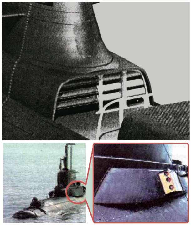 Рис. 57. Примеры расположения ТПК в нишах легкого корпуса подводных лодок.
