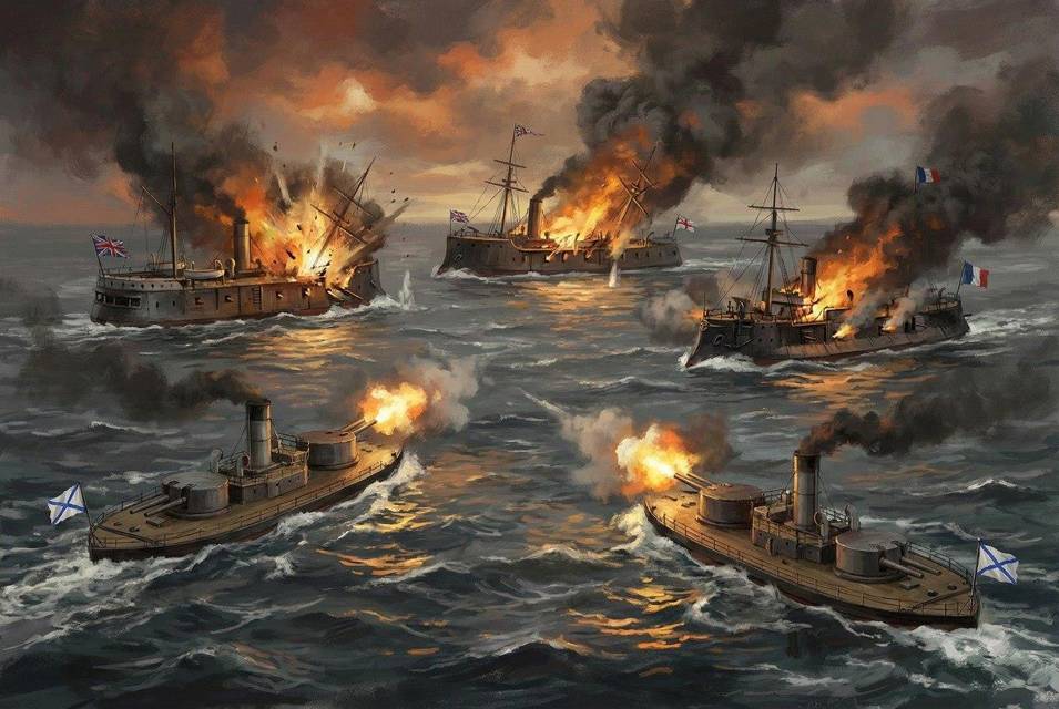 Флот шёл под парусами, и только броненосцы, естественно, шли под парами. Как рассказывал главный механик «Великого князя Константина» инженер Мюллер, когда проект только начали разрабатывать – практически все первые варианты предусматривали наличие парусов. Но князь Николаев-Уэлсли заявил, что «паруса на железном бронированном корабле – это извращение», и что он подобных извращений видеть категорически не желает. Так что мачты на броненосцах были не слишком высокими, без рей и предназначались практически только для поднятия флажковых сигналов.