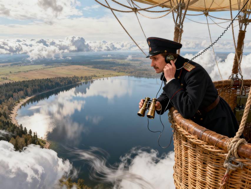 – Ну что сказать,– начал бывший майор, вооружившись кружкой горячего чая.– Шар… то есть уже не совсем шар – форму ты подобрал удачную, её мотает явно поменьше… функцию свою выполняет относительно хорошо. С той высоты, на которую удалось подняться на тросе – в бинокль получилось обнаружить Шальский и, даже, Петрозаводск. Но именно что обнаружить. Разглядеть что-то внятное при такой болтанке на таком расстоянии – занятие почти бесполезное. А вот верст на десять это, пожалуй, возможно. Даже при таком ветре… И это хорошо! Но тут возникают две проблемы – как доложить о том, что ты увидел, и как наблюдателю получить команду о том, куда смотреть и чего надобно искать, когда он уже находится в корзине. Без этого мы будем использовать шар дай бог на десятую часть возможной полезности.