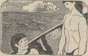 Духота и зловещая тишина словно всё усиливались. Суэмбахамон дышал с трудом, клейкий пот покрывал всё его тело. Теперь и он ощущал какой – то неопределённый страх, стремление куда – то бежать от непонятного надвигающегося бедствия. С трудом подавив это желание, он окликнул кормчего. Тот наконец очнулся от задумчивости и, отдав краткое приказание ближайшему моряку, не спеша подошёл к хозяину корабля.