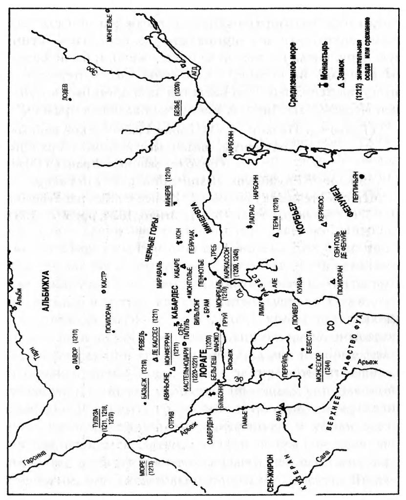 ОСНОВНЫЕ МЕСТА, СВЯЗАННЫЕ С КРЕСТОВЫМ ПОХОДОМ ПРОТИВ АЛЬБИГОЙЦЕВ