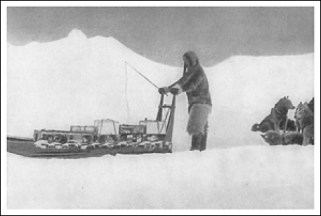 Эскимосы пользуются своим типом саней с незапамятных времен. Прежде, когда у них не было дерева, которое им завезли белые, они делали сани из костей.