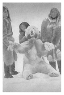 Когда медведя наконец спустили на берег, я сфотографировал его, меж тем как эскимосы ходили взад и вперед, оживленно переговариваясь: для них теперь было несомненным фактом, что в медведе сидел черт, иначе почему бы он стал убегать, когда собаки настигли его? Тонкости арктической демонологии не доступны пониманию белого человека, и я не принял участия в споре относительно того, удрал ли черт, когда винтовка Ублуя поразила его телесное обиталище.
