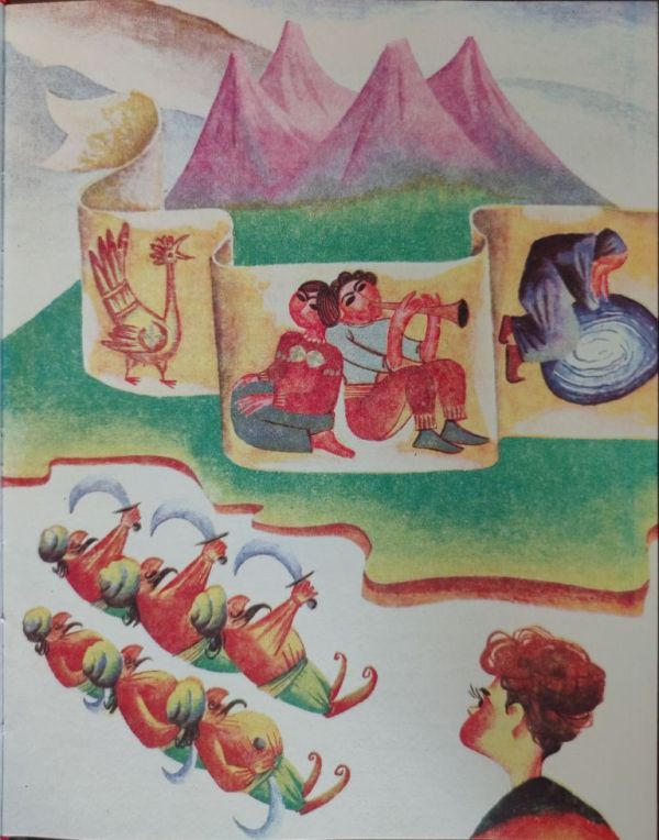 Юноша забрался на выступ скалы и, стоя прямо напротив девушки, поднес свирель к губам. Подхваченная крылатыми ветерками, мелодия разливалась по склонам, а девушка, как зачарованная, шептала слова любви. Они стали видеться ежедневно, и юноша каждый день играл свои песни для девушки с огромными, как море, глазами, и они упивались своим счастьем, как горные цветы, как птицы небесные, как бьющие из-под камней родники. Любовь принесла им счастье, и быть бы ему вечным, если бы в нашу страну не вторглись, как смерч, орды раскосых кочевников, от которых разило зловонием. Подобно бешеному черному потоку, они заполнили всю Араратскую долину и поползли вверх по склонам Арагаца. Они убивали, грабили, сжигали дома, разрушали храмы. Юный пастушок положил свирель за пазуху, взял отцовскую саблю и спустился в долину, чтобы примкнуть к сражавшимся соотечественникам. Он бился с раскосыми разбойниками, затаив в душе тоску по любимой девушке. А она каждое утро забиралась на тот самый выступ скалы, взглядываясь вдаль, – не идет ли ее возлюбленный. По вечерам она забиралась на крепостную стену, снова подолгу смотрела в сторону долины и ей чудились звуки свирели. Это ветерок доносил до нее затаившиеся в лощинах знакомые мелодии. Со слезами на глазах девушка простирала руки, звала к себе возлюбленного, а он в это время сражался с жаждавшими крови врагами, чтобы копыта их лошадей не смели топтать цветы на склонах Арагаца. Миновала осень, а пастуха все не было. Наступила зима, но он все не возвращался. И однажды весной к ним постучались сваты.