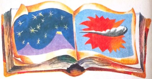 Крот чихнул и выбежал из дома. Через несколько минут он снова появился в комнате, взвалив на спину огромную-преогромную книгу в толстом кожаном переплете. Лесник взял книгу, положил на стол и стал листать ее. Страницы книги были исписаны непонятными знаками и буквами.