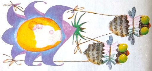 Он дважды хлопнул в ладоши, дверца снова распахнулась сама собой, и в комнату вбежал еж, весь утыканный яблоками и грушами.