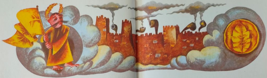 – Наивные люди, – расхохотался горожанин, – откуда вы взялись такие, если не знаете, что, проснувшись утром, мы первым же делом набиваем трубки и начинаем дымить. «Больше дыма», – таков наш девиз. Если у кого-то гаснет трубка, его изгоняют из города, – сказал он, обдав нас едким дымом.