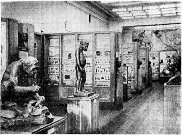 Вот мы на третьем этаже, где расположен вводный отдел музея – отдел происхождения человека и ранних этапов его культуры. Здесь показано генеалогическое древо человеческих рас, реконструкции первых обезьянолюдей, неандертальского мальчика из Тешик-Таша и много других реконструкций скульптурных портретов наших далеких и очень далеких предков, выполненные замечательным советским антропологом М. М. Герасимовым. Выдающийся скульптор и ученый, профессор Герасимов уже при жизни пользовался почти легендарной славой человека, способного по черепу восстановить облик давно умершего. Блестящее знание природных пропорций и недюжинный талант ваятеля позволяли Михаилу Михайловичу Герасимову буквально творить чудеса. Под его руками мертвые кости обрастали мускулами, и оживало лицо то безымянного синантропа или неандертальца, то великих людей прошлого – Улугбека или Шиллера.