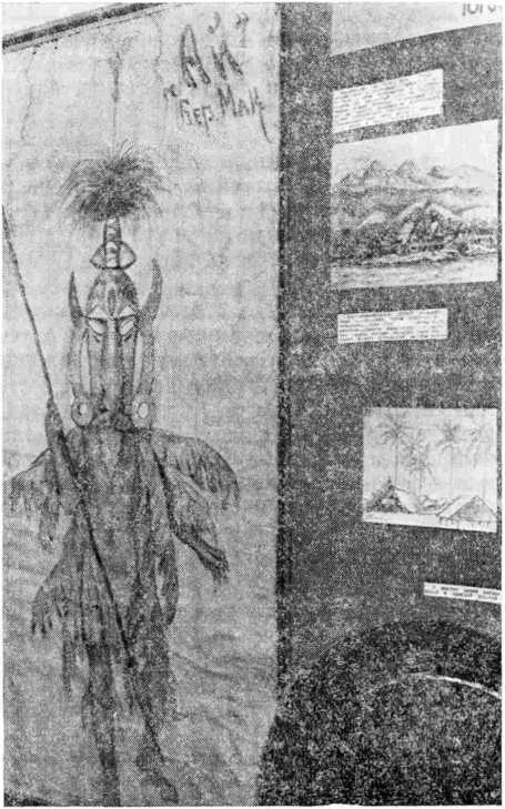 Вернемся в залы второго этажа Кунсткамеры. Пройдем ротондой, где представлены предметы культуры и быта индонезийских пародов. Еще несколько шагов – и прямо перед нами волевая фигура первого гавайского короля Камеамеа I, одетого в королевский плащ мамо из перьев крошечных красных и желтых птичек. Таких плащей во всем мире меньше десяти, но плаща Камеамеа I нет больше нигде. Этот обширный зал посвящен народам Океании, и балюстрада, окаймляющая зал на уровне третьего этажа, использована для выставки личных дневников, зарисовок и коллекций Миклухо-Маклая.