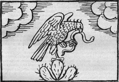 Яркие лучи полуденного солнца и острое ощущение голода пробудили его. Первое, что увидел тлашкаланский воин, был орел, взлетевший над мощным кустом агавы со змеей, извивающейся в его когтях. Боги, несомненно, благословляли дорогу тлашкаланца в этой стране. Когда теночки пришли в долину Анахуак, они построили свой город на том месте, где увидели орла, сидящего на кактусе со змеей в когтях. Жрецы тогда решили, что орел со змеей в когтях – божественное предзнаменование могущества теночков.