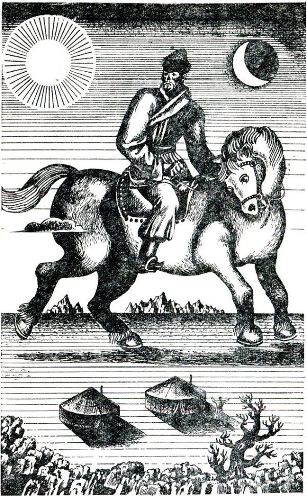 – Сын, – сказал тогда старик отец, – ты стал так могуч, что юрта не может вместить тебя. Твой голос так силен, что песня становится ураганом. Пойди к горам, спроси их владыку, что теперь тебе делать. Но только возвращайся скорее: я вижу вдали черную тучу печали.