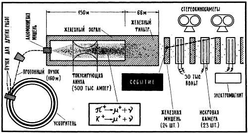 Нетрудно догадаться, что для проведения нейтринных экспериментов нужно создать поток нейтрино, нужно очистить его от всех других частиц и нужно терпеливо ждать «событий» – столкновения нейтрино с ядерными частицами. Но от общей схемы, от этих, казалось бы, простых «нужно» лежит трудный и долгий путь до реальных установок, реальных экспериментов.