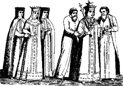 Царь и царица на бракосочетании. Гравюра XVI в.