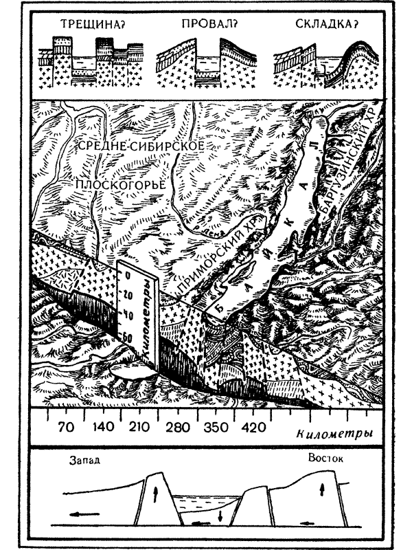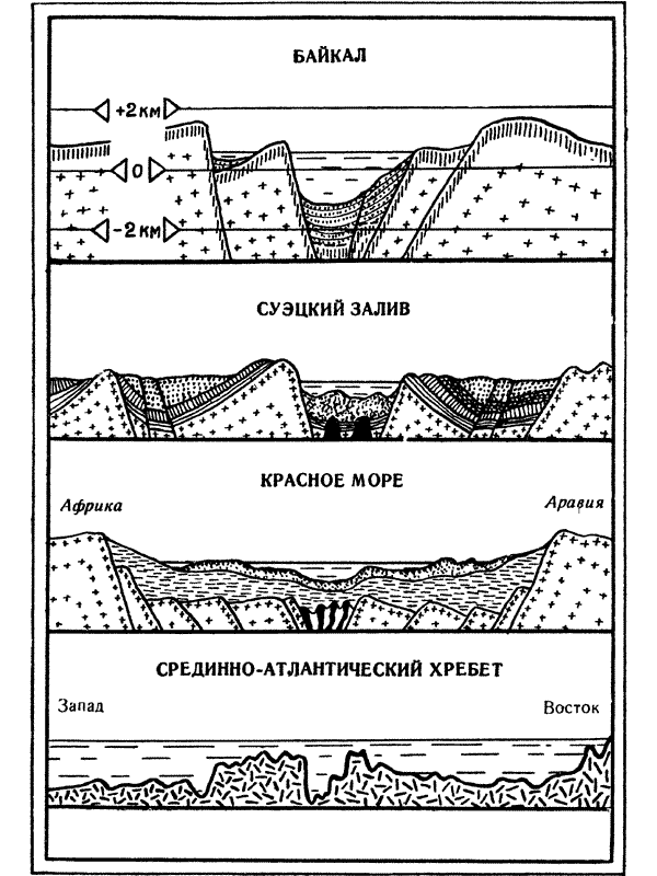 Сходно рисуют геологи разрезы через Прибайкалье и через Суэцкий какал.
