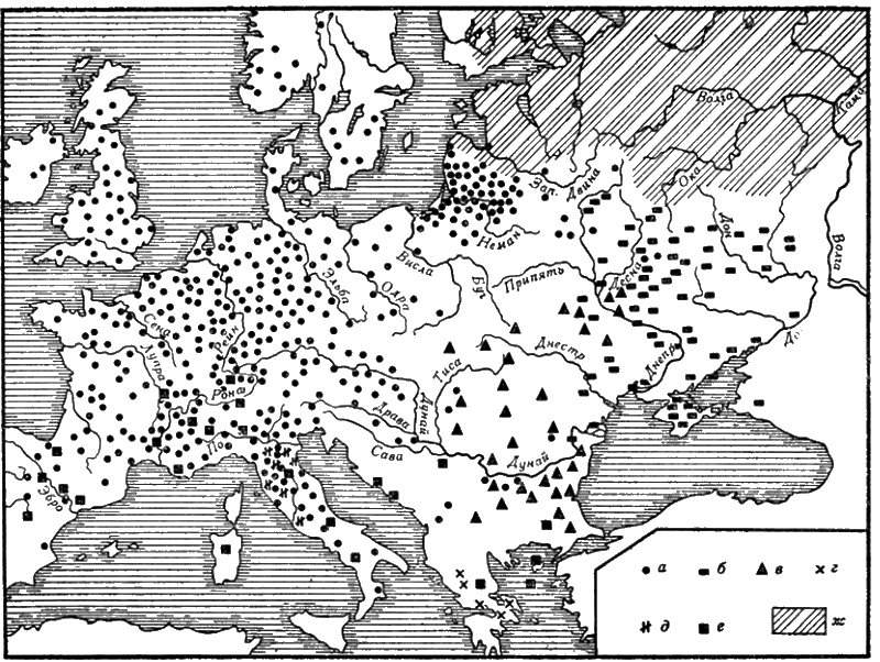 Создатель теории древнеевропейской гидронимии X. Краэ строил свои выводы о ее географическом распространении на основе анализа материала Северной и Центральной Европы (рис. 1). Поэтому восточные границы древнеевропейской гидронимии и древнеиндоевропейской языковой общности им установлены без учета многих данных: так, он привлекает балтийский материал. но почти не использует материала славянских языков и т. д. В результате некоторые выводы X. Краэ, а также сторонников его концепции (В. Шмид и др.) о географической локализации древнеевропейской гидронимии носят спорный характер. Но о балтах, славянах и особенностях гидронимии их территорий мы расскажем в следующем разделе.
