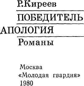 Два романа, вошедшие в книгу, посвящены современности, теме нравственного становления личности. В центре романа «Победитель» – молодой ученый, размышляющий не только над сугубо специальными, но и над многими вопросами этического характера. Об ответственности человека перед самим собой и перед обществом задумывается и герой романа «Апология». Оба романа написаны в едином стилистическом ключе и представляют своеобразную дилогию.