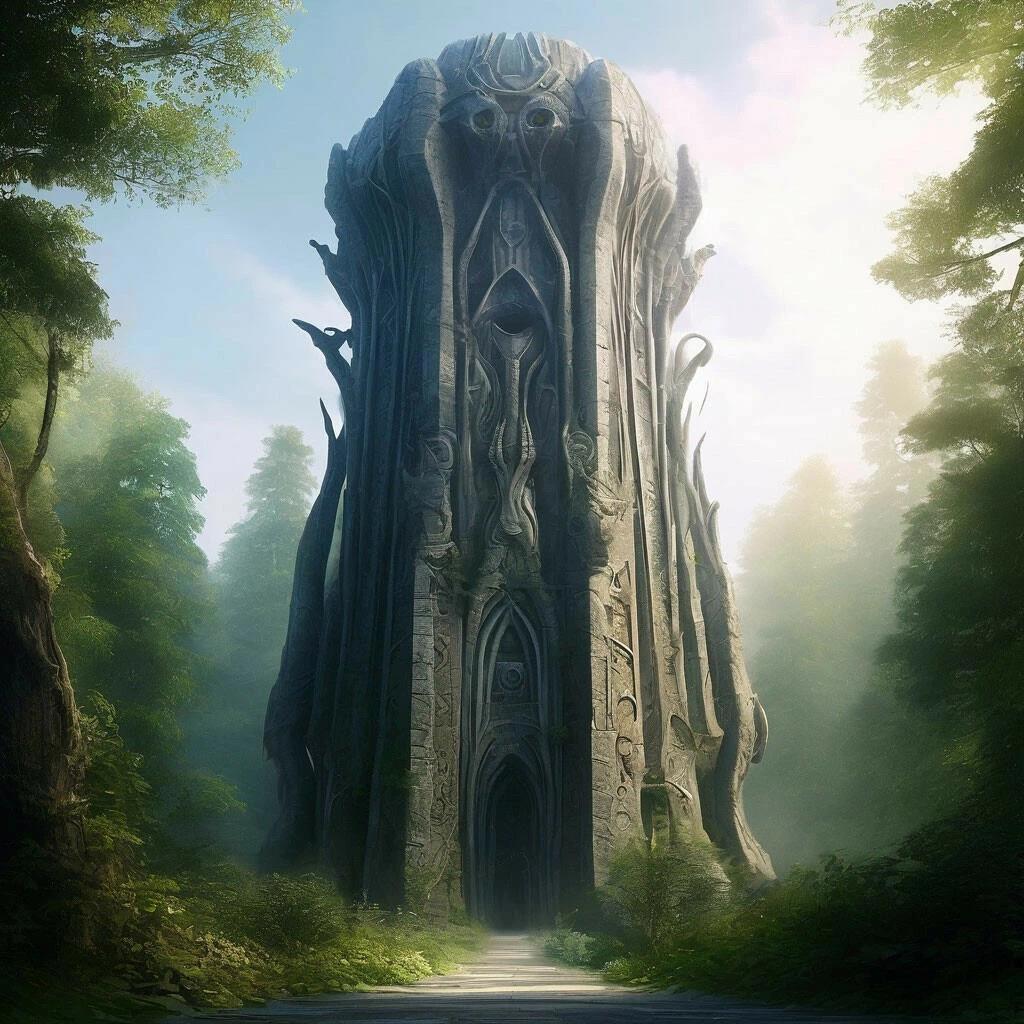 Я решил спуститься на планету, и посетить эту библиотеку древних. Вилд меня перенёс к единственному зданию на планете. Это была не большая резная башня из камня, высотой около двадцати метров, один вход и не одного окна.