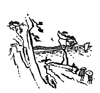 К вечеру разыгрался шторм. Спасаясь от непогоды, мы укрылись в небольшой уютной гостинице с поэтическим названием «Усуюки-со» – «Горный цветок». Приткнувшись у крутого склона рыжей сопки, гостиница эта с деревянными голубыми стенами под красной железной крышей действительно напоминала одинокий цветок, затерянный среди сопок и утесов бухты Гэнти.