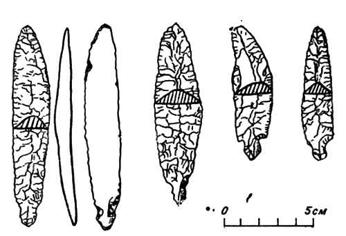 Рис. 31. Каменные ножи (стоянка Фунадомари IV).