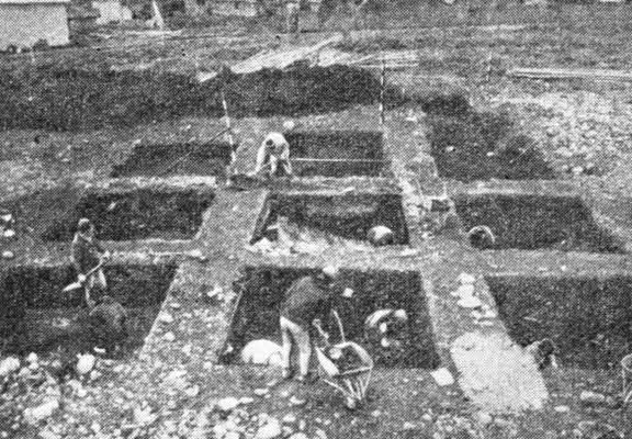 Рис. 32. Раскопки стоянки Кабукай.