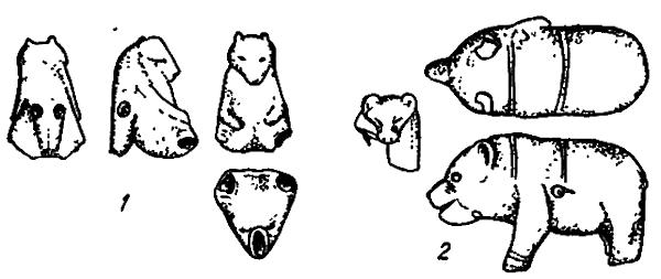 Рис. 35. Костяные фигурки медведей.